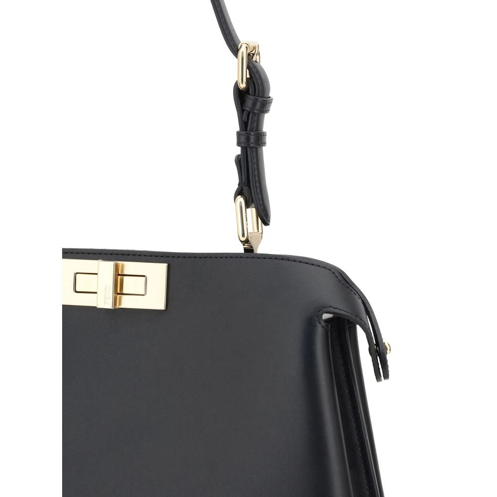 The Peekaboo Handbag in leather by Fendi is a timeless classic that combines elegance and practicality. The adjustable top handle allows you to adapt it to your style, carrying it by hand or as a shoulder bag, depending on your preference. The hook closure on the front and back ensures safety and a touch of originality, while the refined and sophisticated design is enriched by its functionality. With three internal compartments, this bag offers ample space to best organize your objects, maintaining a clean and minimalist look.