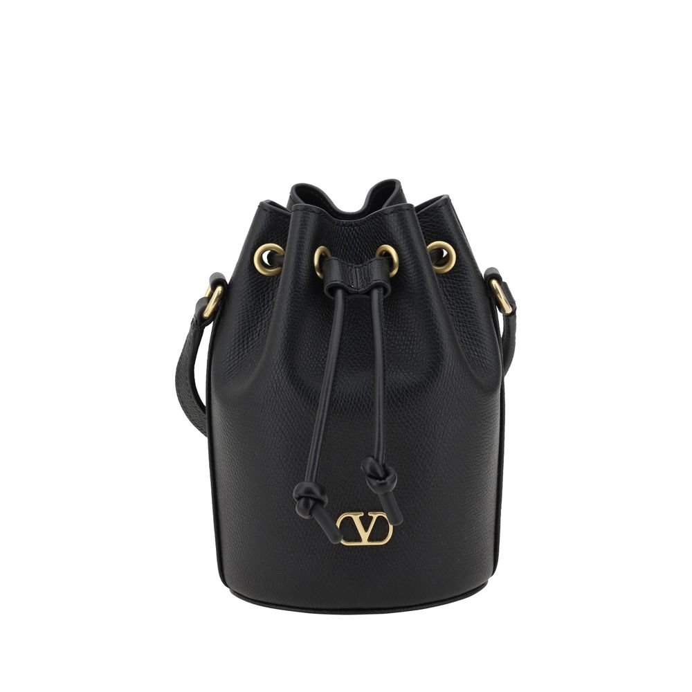 The Valentino Garavani mini VLogo Drawstring Bucket Bag in hammered leather is a sophisticated and functional accessory. The shoulder strap is flat and adjustable, while the front drawstring closure combines practicality and style. The interior, with a single compartment, offers enough space for essentials. The iconic metal monogram applied on the front gives a distinctive and high-class detail. Complete every look, both casual and elegant, thanks to the removable flat shoulder strap, ideal for those seeking versatile and bold elegance.