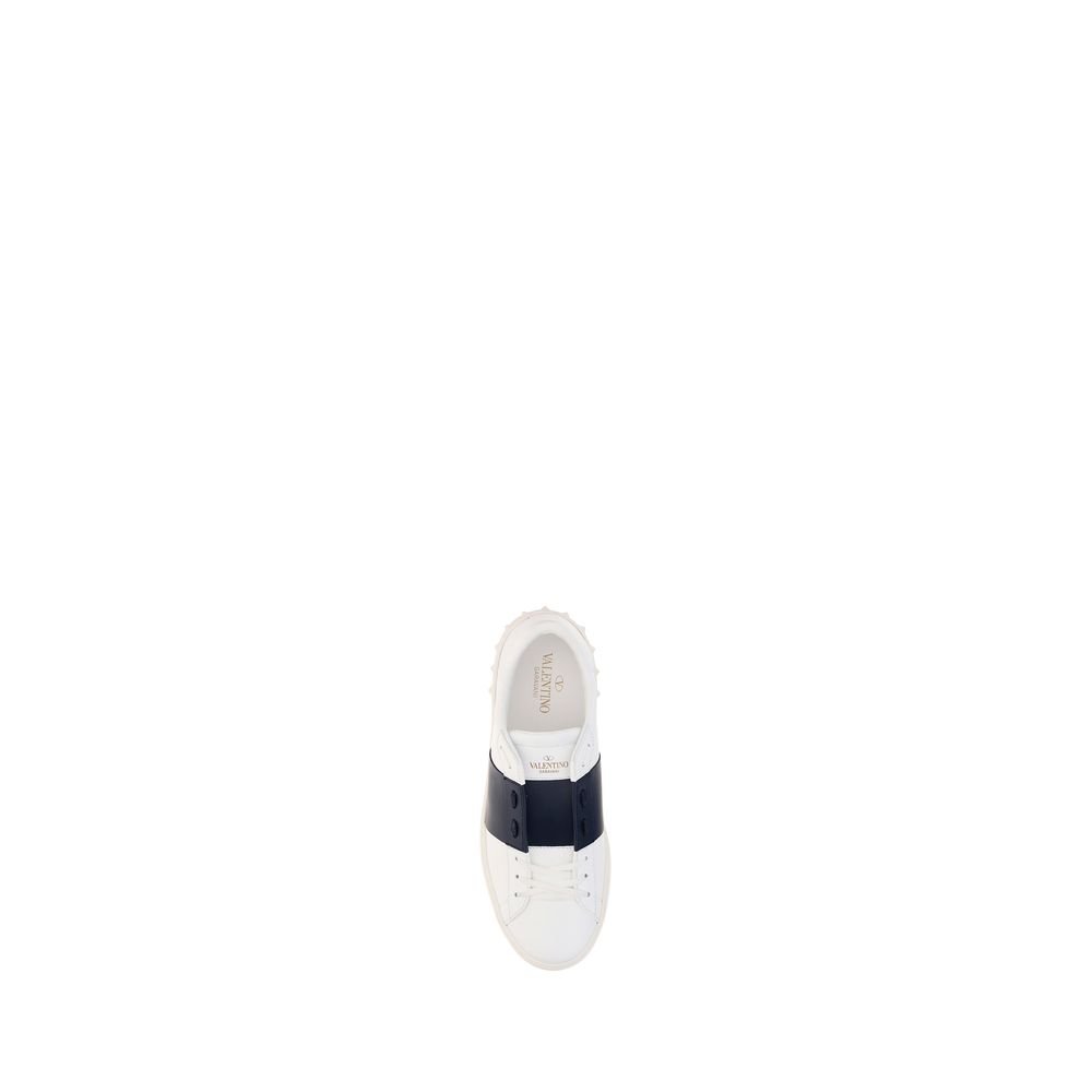 + Free ShippingLeather Open Sneakers by Valentino Garavani, slip-on lace-free style, round toe on front, contrasting band on side panels, knurled sole, contrasting logo label on front tongue, iconic Rockstud studs applied on perimeter of heel.
