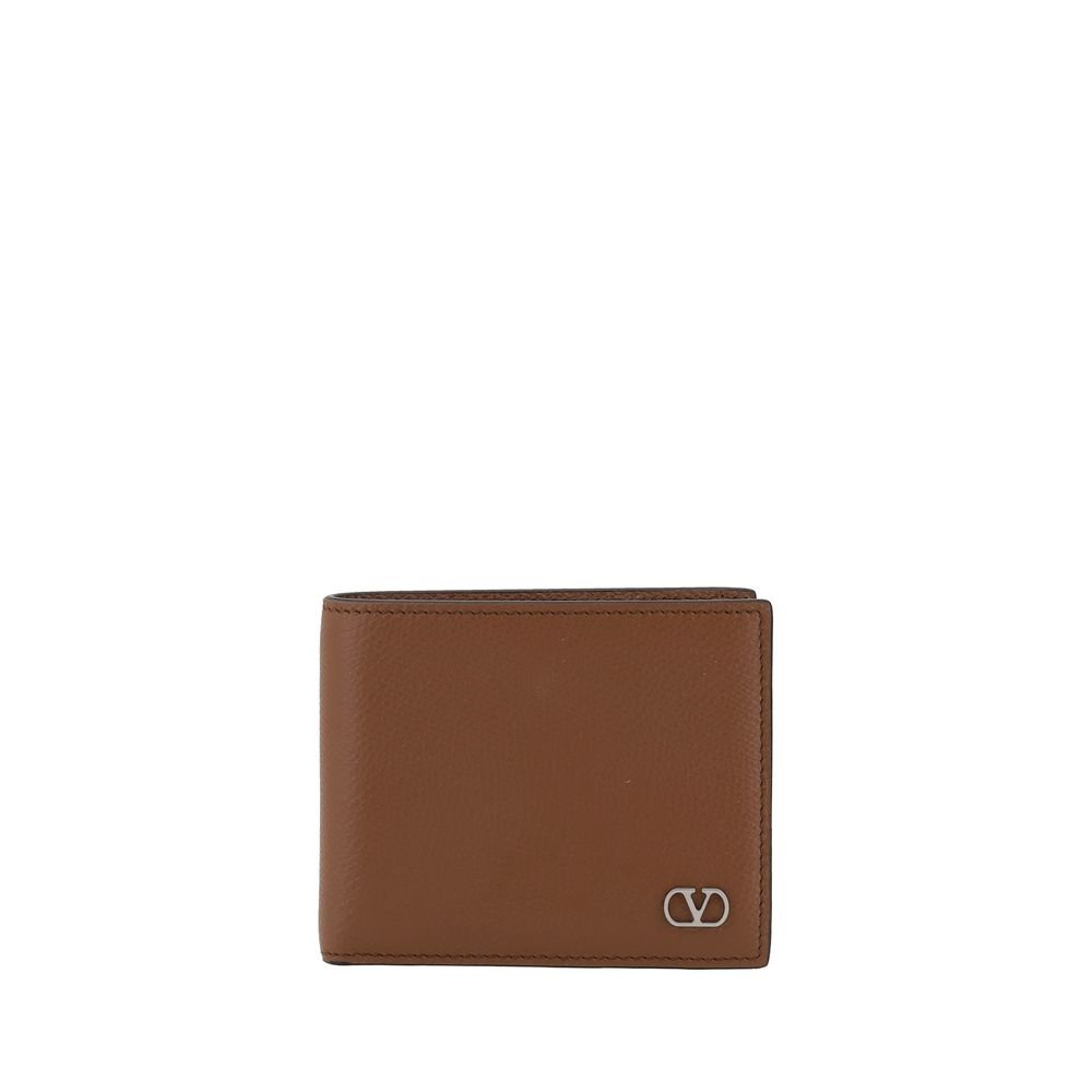 Leather Valentino Garavani Wallet, billfold model, three-dimensional iconic Vlogo brand plaque applied on front, bill compartment, card slot, iconic brand monogram printed in contrasting pressure on interior panel.